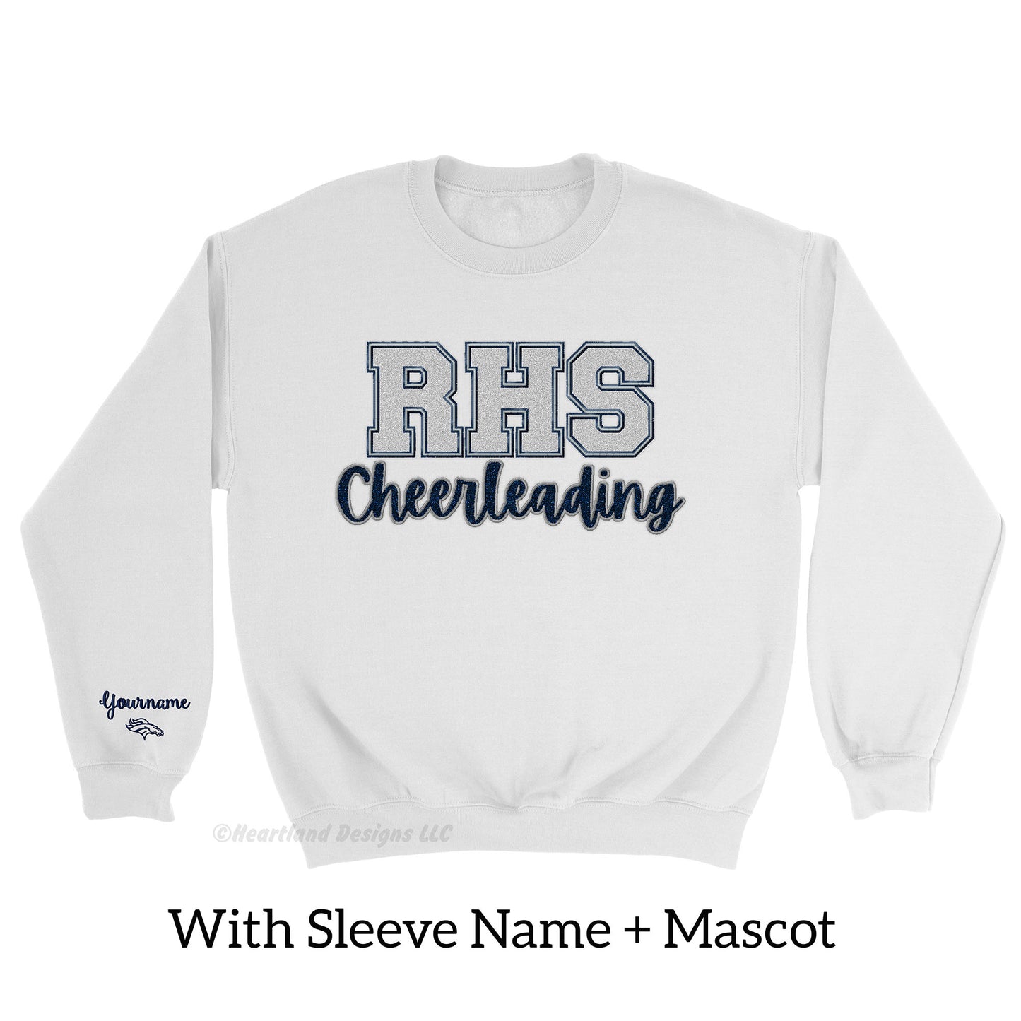 Jersey de cuello redondo de animadora Bronco con purpurina bordada