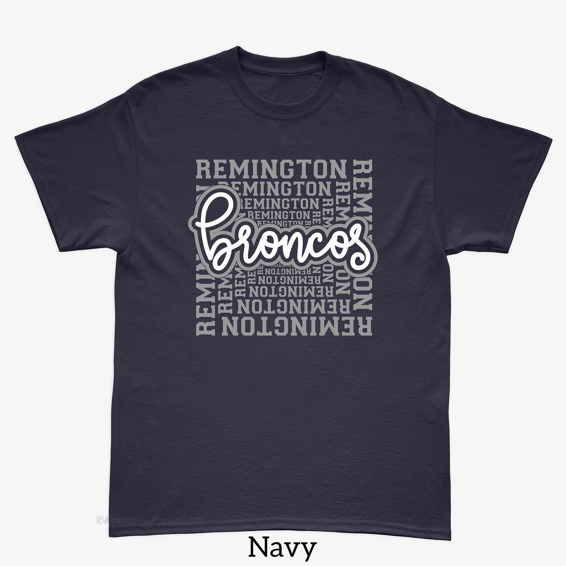#2533 Remington Broncos Wordbox Printed Short Sleeve Tee